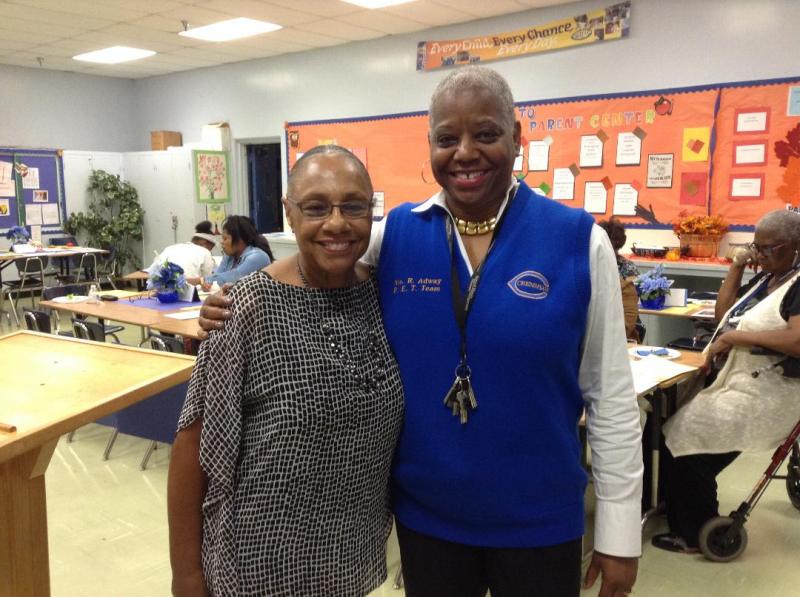 Professor Emeritus Toni Rhodes (left) from LA Southwest Community College, with Rhonda Adway (right), Community Representative at Crenshaw High School.