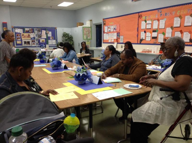 Professor Emeritus Toni Rhodes conducting a workshop for parents/guardians at Crenshaw High School in Los Angeles.